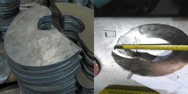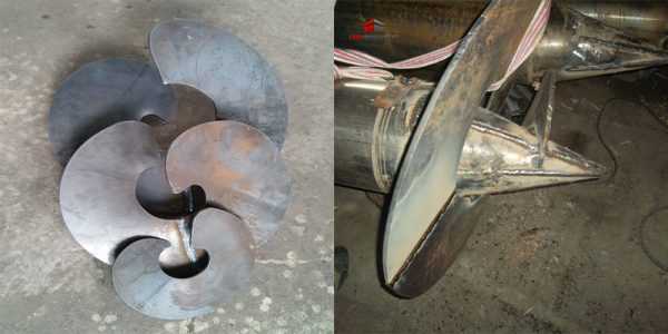 Шаг 8. Подготовьте лопасти. Выше мы уже упоминали, что в этом варианте используются детали сложной геометрии. Делать их надо также по шаблону, его можно найти и скачать в сети и распечатать на принтере. Лопасти вырезаются газовым резаком, если его нет, то выгоднее заказать изготовление специалистам. Они точно выдержат все размеры, а это очень важно для качества свай.