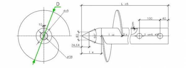 ширину шага винта. В двухзаходной конструкции две одинаковые лопасти наваривают на расстоянии 250-300 мм, нижняя лопасть монтируется на 20-30 мм выше наконечника.