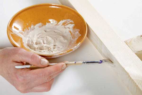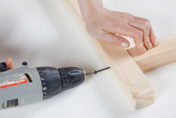 Обработав таким образом оба конца каждой планки, складываем их в прямоугольные рамы, промазав перед этим выемки клеем. До его высыхания соединение фиксируется струбцинами. С изнанки на раму для прочности устанавливаются мебельные уголки.