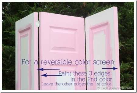 Окрашивая стороны в разный цвет, обратите внимание на следующее. Окрасьте вторым видом краски только правые края на первой и третьей двери. Закрасьте только левый центр вторым видом краски. Установив двери, вы не заметите другого цвета покраски.