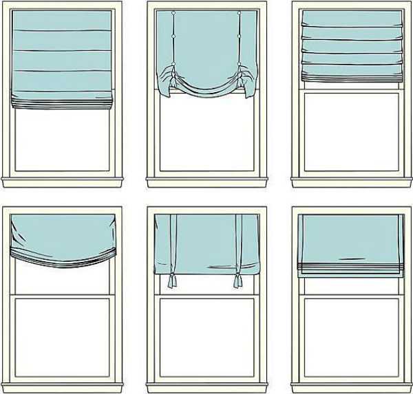 На схеме представлены несколько вариантов подъема римских штор