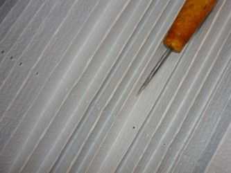 ΠΠΎΠ³Π΄Π° Π³ΠΎΡΠΎΠ²Π° Π²ΡΡ Π³Π°ΡΠΌΠΎΡΠΊΠ°, ΠΎΡΡΡΡΠΏΠΈΠ² Π½Π° 15 ΡΠΌ Ρ ΠΎΠ±ΠΎΠΈΡ ΠΊΠΎΠ½ΡΠΎΠ², ΡΠΈΠ»ΠΎΠΌ Π΄Π΅Π»Π°Π΅ΠΌ ΠΎΡΠ²Π΅ΡΡΡΠΈΡ, ΡΠ΅ΡΠ΅Π· ΠΊΠΎΡΠΎΡΡΠ΅ Π±ΡΠ΄Π΅Ρ ΠΏΡΠΎΠ΄ΡΡΠ½ΡΡ ΡΠ½ΡΡ Π΄Π»Ρ ΠΎΠΏΡΡΠΊΠ°Π½ΠΈΡ ΠΈ ΠΏΠΎΠ΄ΡΠΌΠ°Π½ΠΈΡ ΡΡΠΎΡΡ. ΠΡΠ»ΠΈ ΠΏΠ»Π°Π½ΠΈΡΡΠ΅ΡΠ΅ ΡΠΈΡΠΎΠΊΡΡ ΠΏΠΎΠ»ΠΎΡΡ Π½Π° Π²ΡΡ ΠΎΠΊΠ½ΠΎ, ΡΠΎ ΠΏΠΎΡΡΠ΅Π΄ΠΈΠ½Π΅ ΡΠ΄Π΅Π»Π°ΠΉΡΠ΅ Π΅ΡΡ ΠΎΡΠ²Π΅ΡΡΡΠΈΡ, ΡΡΠΎΠ±Ρ ΠΆΠ°Π»ΡΠ·ΠΈ Π½Π΅ ΠΏΡΠΎΠ³ΠΈΠ±Π°Π»Π°ΡΡ. ΠΡΠ»ΠΈ ΡΡΠΎΡΠ° ΡΠ·ΠΊΠ°Ρ, ΡΠΎ ΠΎΡΠ²Π΅ΡΡΡΠΈΡ Π΄Π΅Π»Π°Π΅ΠΌ ΠΏΠΎΡΡΠ΅Π΄ΠΈΠ½Π΅ ΠΏΠΎΠ»ΠΎΡΡ, Π° ΠΏΠΎ ΡΡΠΎΡΠΎΠ½Π°ΠΌ Π½Π΅ Π½ΡΠΆΠ½ΠΎ.Π‘Π»Π΅Π΄ΡΡΡΠΈΠΉ ΡΠ°Π³Β β Π² ΠΏΠΎΠ»ΡΡΠ΅Π½Π½ΡΠ΅ ΠΎΡΠ²Π΅ΡΡΡΠΈΡ Π±ΠΎΠ»ΡΡΠΎΠΉ ΠΈΠ³ΠΎΠ»ΠΊΠΎΠΉ ΠΈΠ»ΠΈ ΠΊΡΡΡΠΊΠΎΠΌ ΠΏΡΠΎΠ΄ΡΡΠ³ΠΈΠ²Π°Π΅ΠΌ ΡΠ½ΡΡ. ΠΠ³ΠΎ ΠΊΠΎΠ½ΡΠΈΠΊΠΈ Π½ΡΠΆΠ½ΠΎ ΠΎΠΏΠ»Π°Π²ΠΈΡΡ, Π½ΠΈΠΆΠ½ΠΈΠΉ ΠΊΡΠ°ΠΉ Π·Π°ΠΊΡΠ΅ΠΏΠΈΡΡ Π² ΡΠΈΠΊΡΠ°ΡΠΎΡΠ΅, ΠΌΠΎΠΆΠ½ΠΎ ΠΊΡΠΏΠΈΡΡ ΠΈΠ»ΠΈ ΡΡΠ΅Π·Π°ΡΡ ΡΠΎ ΡΡΠ°ΡΠΎΠΉ ΠΊΡΡΡΠΊΠΈ. ΠΠ½ Π½ΡΠΆΠ΅Π½, ΡΡΠΎΠ±Ρ Π·Π°Π½Π°Π²Π΅ΡΡ ΠΎΡΡΠ°Π²Π°Π»ΠΈΡΡ Π½Π° Π½ΡΠΆΠ½ΠΎΠΉ Π΄Π»ΠΈΠ½Π΅.