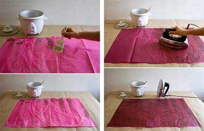 Π Π°Π±ΠΎΡΠ°ΡΡ ΡΠ΄ΠΎΠ±Π½Π΅Π΅ Π½Π° Π±ΠΎΠ»ΡΡΠΎΠΉ ΠΏΠ»ΠΎΡΠ°Π΄ΠΈ. ΠΡΡΠ΅Π·Π°Π΅ΠΌ ΠΏΠΎΠ»ΠΎΡΡ ΠΎΠ±ΠΎΠ΅Π² Π½ΡΠΆΠ½ΠΎΠ³ΠΎ ΡΠ°Π·ΠΌΠ΅ΡΠ°, ΡΠ°ΡΠΊΠ»Π°Π΄ΡΠ²Π°Π΅ΠΌ Π½Π° ΡΡΠΎΠ»Π΅, Π½Π° ΠΊΠΎΠ½ΡΠ°Ρ ΡΠ°ΡΠΏΠΎΠ»Π°Π³Π°Π΅ΠΌ Π³ΡΡΠ·ΠΈΠΊΠΈ, ΡΡΠΎΠ±Ρ ΡΡΠ»ΠΎΠ½ Π½Π΅ ΡΠ²ΠΎΡΠ°ΡΠΈΠ²Π°Π»ΡΡ.