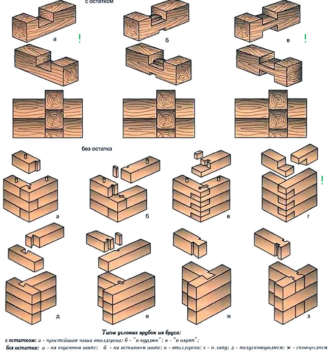 В зависимости от соединения бревен в углах, сруб может выполняться «в лапу» или «в обло».