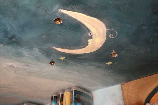 На потолке нарисовала небо. Покажу вам его эскиз, нарисованный впопыхах, чтобы не упустить идею и как получилось в результате: