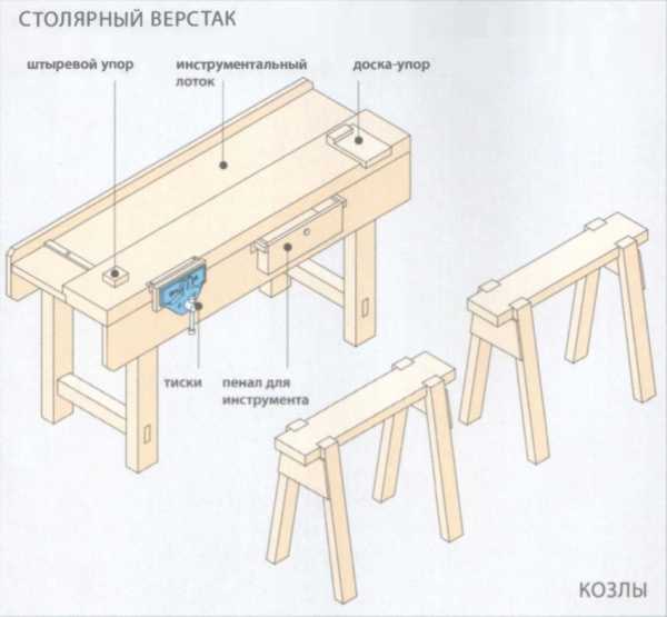 Итак, мы разобрались как построить здание, теперь рассмотрим как обустроить мастерскую на даче. Обязательным элементом любой мастерской является верстак с тисками. Он понадобится вне зависимости от того, будете ли вы работать с деревом или с металлом.