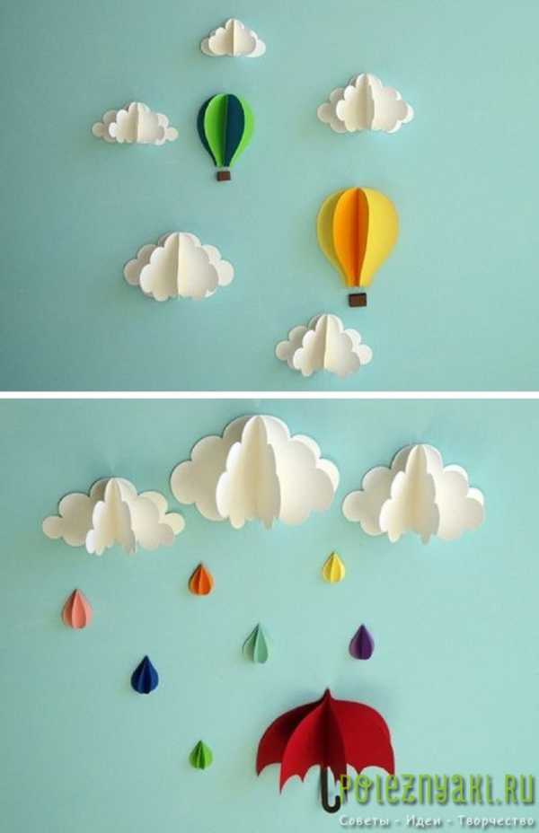 Великолепные фигурки облаков и воздушных шаров украсят стену в спальне вашего ребенка