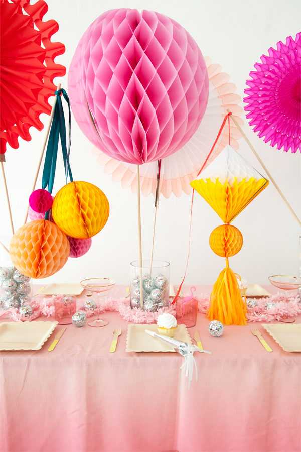 Украшения из бумажных вееров можно прикрепить на стену кнопками или булавками. А можно приделать к ним яркие ленты и подвесить на карниз, картину или зеркало.