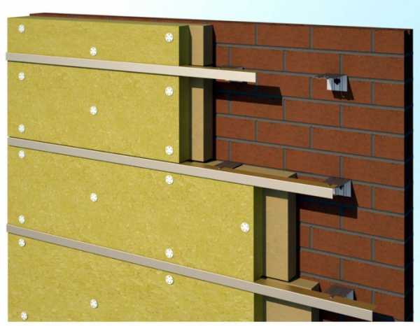 Важно! Утеплитель нанизывается на специальные кронштейны, на которые впоследствии крепится профиль системы вентилируемого фасада.