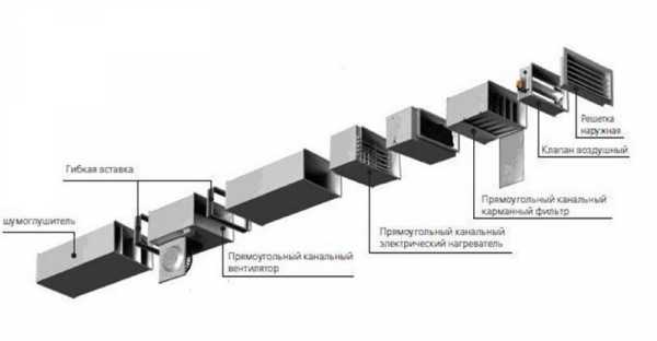 Как уже упоминалось, проектирование подобных систем обычно поручают инженерам-профессионалам. Собственно же сама сборка наборной вентиляции может быть произведена своими руками. Выглядит сборка системы данного типа примерно таким образом:
