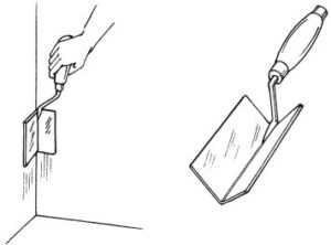 - Угловой шпатель. Этот инструмент выполнен в виде прямого угла в 90 градусов и способен выравнивать поверхность в труднодоступных местах, куда ни один другой инструмент недостанет.