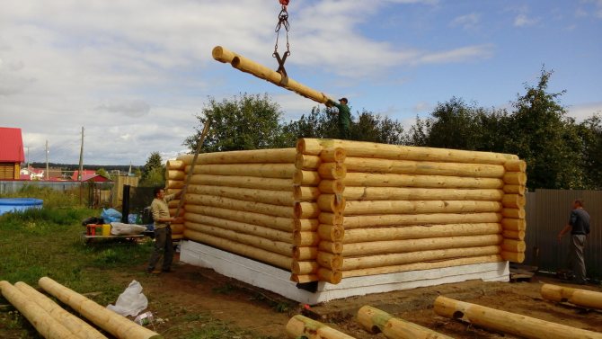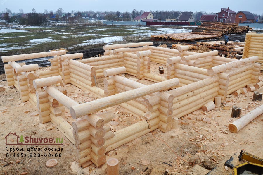 - Строительство стен сруба