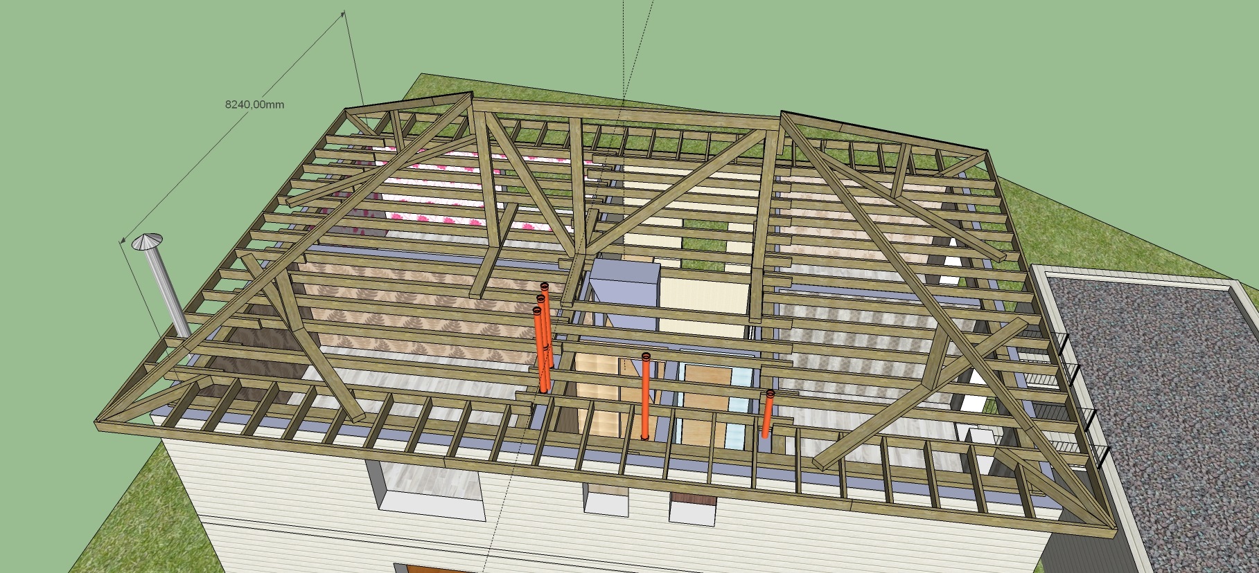 Но крыши стали проще за последние 30 лет . Это потому, что многие строители теперь используют фермы для конструкции крыши. Фермы опираются на систему стропил меньшей ширины и балок перекрытия, усиленных сеткой перемычек. Они построены на заводе и возведены на родине.