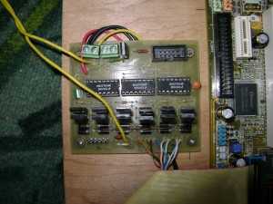 Материнка без видеокарты, она тут и не нужна. Станок управляется по сети через Radmin. Она также настроена на авто включение после того как появится питание. IDE шлейф был укорочен.