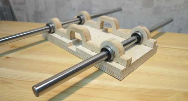Изготовил 4 штуки. Кстати бочонки сделаны из старого болта на 10 или 12 (точно не помню). Далее все это закрепил на платформу которая будет ездить, сделал направляющие: