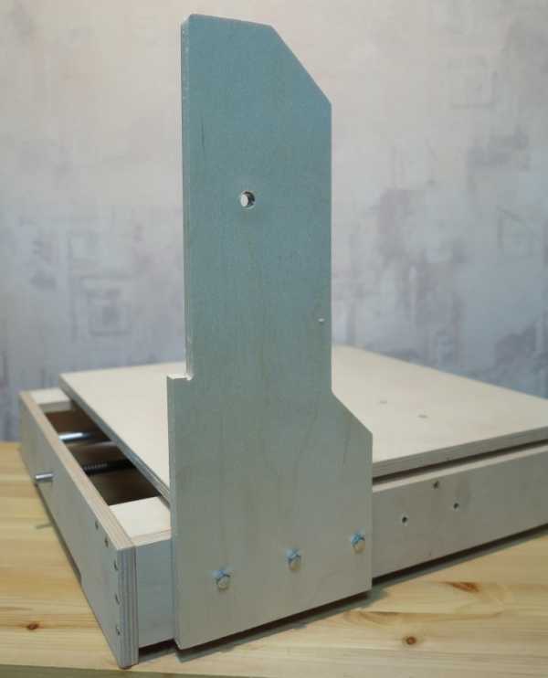 На этом этапе фото оси Z заканчиваются, переходим к оси Y. Поскольку мебельные направляющие неидеальны, пришлось с обратной стороны сделать упор. Ну и тут же сделал гайку и поставил все это на станок: