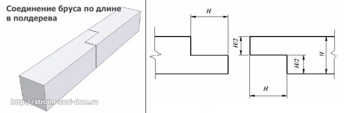 - Продольное соединение бруса.