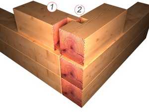 - Вертикальное соединение венцов в конструкции одной стены.