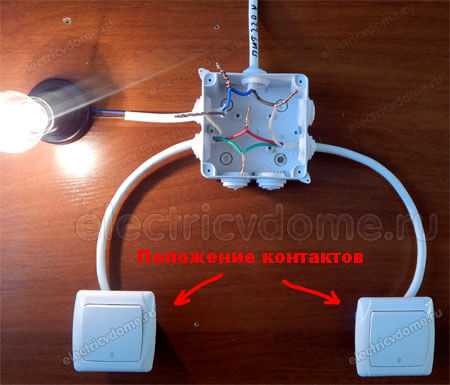 Проходной выключатель схема подключения — управление светильником из 2 мест