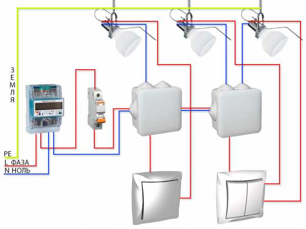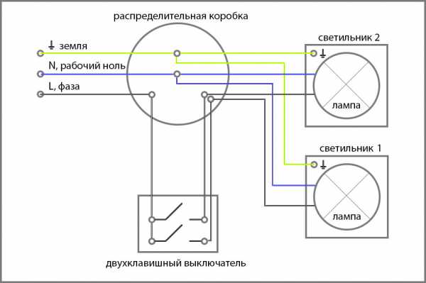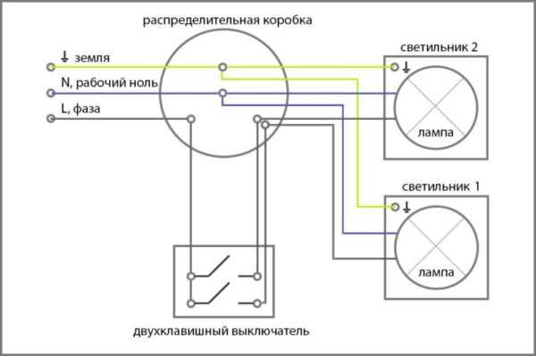 Схема подключения светильников через двухклавишный выключатель