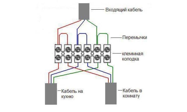 Порядок коммутации проводов, идущих к розеткам и светильникам