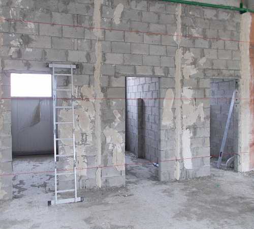 2. Если есть излишние выступы, которые выходят за пределы отвеса в предполагаемой плоскости стены, то их лучше убрать или приспособить под декор. Иначе придется увеличивать слой штукатурки, соответственно, прибавится объем работ и расход материала.