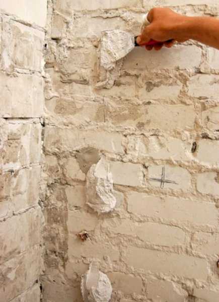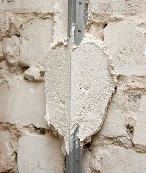Технологические отверстия и крупные впадины, а также штробы для прокладки инженерных систем должны быть заделаны. Для этого обычно используются смеси, с помощью которых в дальнейшем осуществляется оштукатуривание. Сильно выступающие участки по возможности удаляются. Сюда следует отнести растворные шлепки, отрезки арматуры или проволоки, а также выступающий из кладочных швов раствор. Если к дефектам относятся неровности поверхности кладки, то их удалять не стоит, в процессе работы вы скроете их под штукатурным слоем.