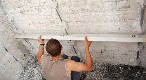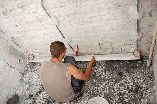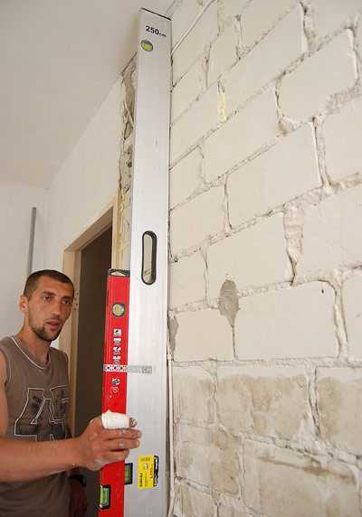 Для того чтобы выровнять стены без перерасхода раствора, следует определить максимально высокий участок, который станет отправной точкой для нового уровня. С помощью отвеса и строительного уровня следует осуществить разметку для маяков. Этот этап особенно важен, это касается как простых по геометрии поверхностей, так и сложных по архитектуре участков.