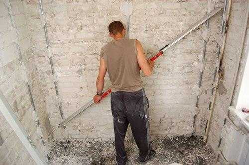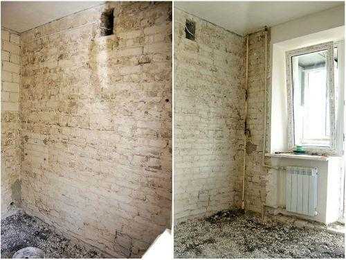 - Следует удалить старые покрытия и грязь, чтобы работать непосредственно со стеной.
