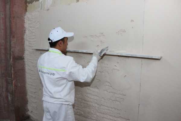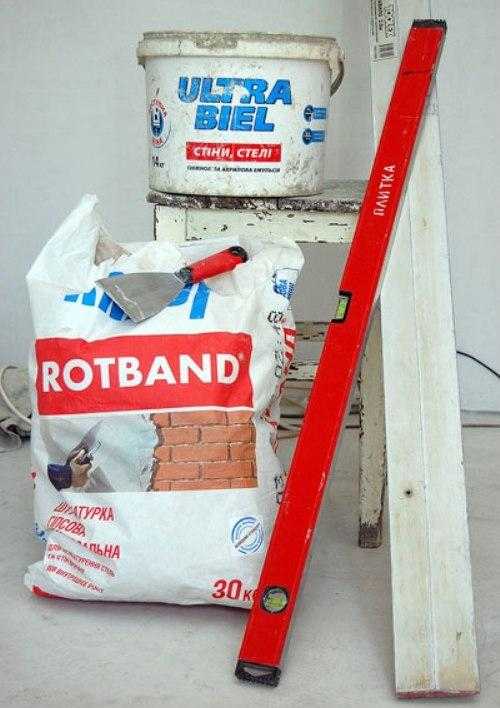 Этот вариант применяют, если требуется нанести минимальный слой штукатурки. Обязательное условие — сама штукатурка должна быть гипсовой, для цементно-песчаной штукатурки такой способ не подходит.