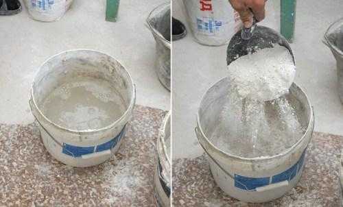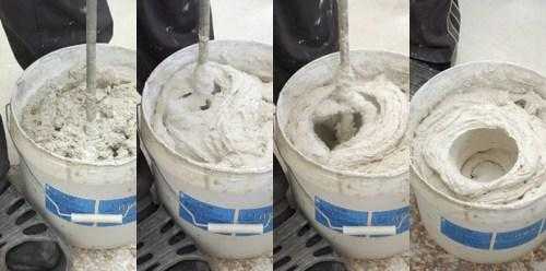 - Затем приготовить небольшое количество раствора. Это может быть обычная штукатурка с добавлением алебастра, чтобы ускорить ее застывание, гипсовая смесь или плиточный клей. Инструкция по изготовлению есть на упаковке.