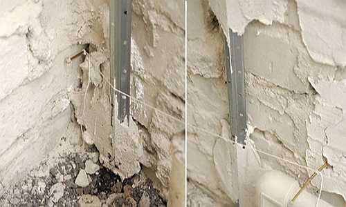 Маяки выставляются после удаления с оснований старых штукатурных покрытий. Даже если старая штукатурка хорошо держится и не покрыта составами, ухудшающими адгезию, такую подготовку все же стоит осуществить. На поверхности до установки маяков не должно быть трещин. Если они имеются, следует выяснить причину их появления и устранить ее. После этого трещины заделываются ремонтным составом. При необходимости можно осуществить армирование таких дефектов.