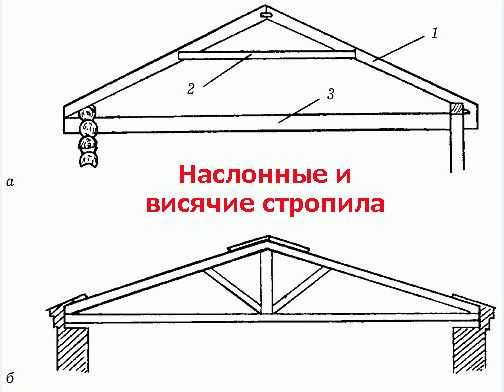 Стропила по способу крепления подразделяются на висячие и наслонные.