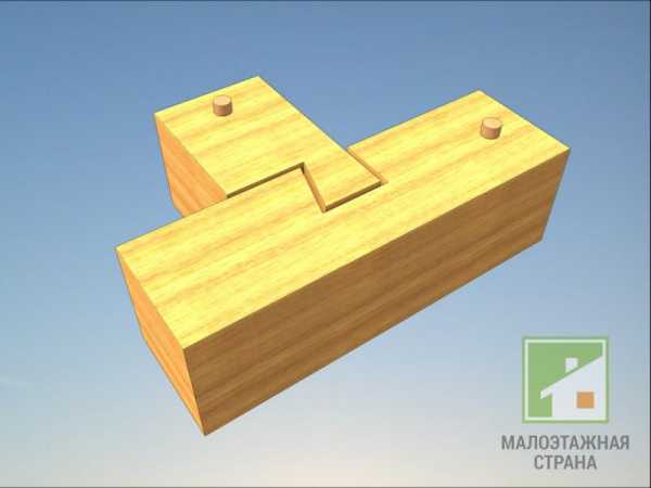 Данный вид соединения, который также именуют как «коренной шип» сохраняет стены от смещений, и обеспечивает непревзойденную защиту от ветра.
