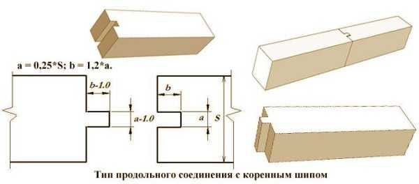 - Коренной шип — прекрасная замена шпонкам. При прямом сращивании он перемещается с края бруса к его середине.