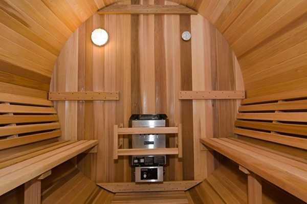 За счет экономичного дизайна прогрев такой бани проводится за 30-40 минут, при этом жар держится до 3 часов. Этого вполне хватит для небольшой компании или семьи.