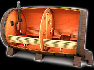 По форме это конструкция-цилиндр. Высота изделия достигает 3 метров, а длина 6. Существуют различные формы и типы таких бань. Самые маленькие бани в длину составляют лишь 2 метра и состоят из одного единственного помещения – парной.