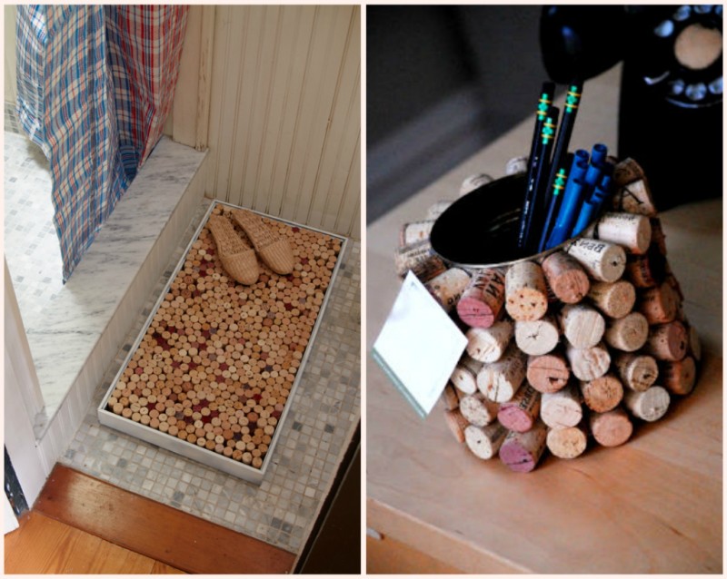Например, в бутылку с широким горлышком можно уложить раскрашенные шишки и, закупорив ее, поставить на сервант. Или прикрепить несколько бутылок к стене и поставить в них искусственные цветы.