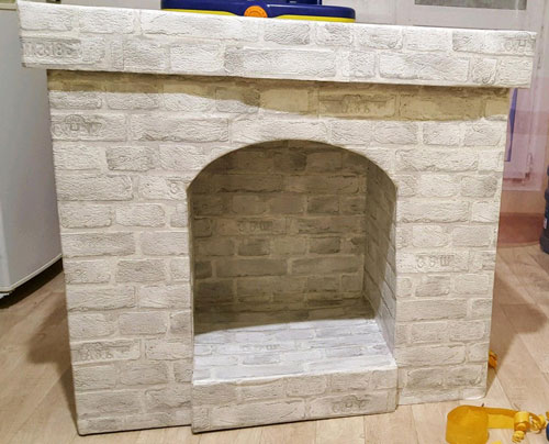 Для этого варианта требуется минимальный набор инструментов — ножницы, клей ПВА и несколько картонных коробок. Финишную отделку лучше выполнять из легких материалов (обоев или кирпичиков из пенопласта), а можно обойтись краской. Плюсы таких фальш-каминов в мобильности, быстром изготовлении и возможности менять дизайн под настроение. Минусы — хрупкость и высокая пожароопасность, в них нельзя размещать свечи или другие нагревательные элементы.