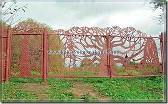 Две створки ворот размерами 2000×1680 мм и калитка — 1000×1680 мм — были изготовлены из прямоугольного профиля сечением 50×20 мм с толщиной стенки 2 мм и обтянуты с одной стороны сеткой. Но вот беда — ворота и калитка казались пустыми и скучными. На семейном совете было решено сделать накладки из листового металла, но не сплошные, а просечные, в виде ажурного силуэта дерева.