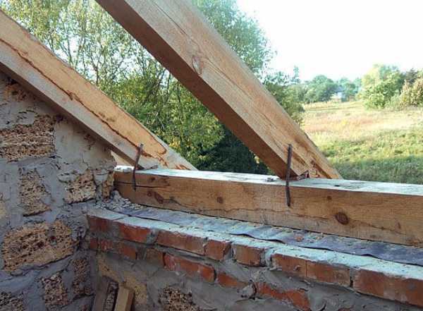 - В местах соприкосновения стропильной системы со стенами обязательно должны использоваться изоляторы влаги. Наиболее оптимальным для этого является использование гидростеклоизола или рубероида.