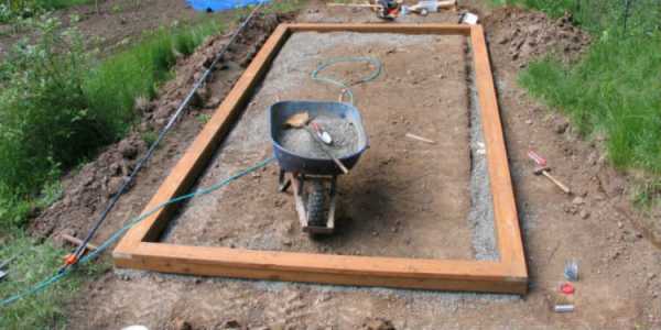 После этого, в качестве подготовки, делается разметка самой земли, готовится опалубка и устраивается песчаная подушка. Далее заготовка под фундамент армируется и заливается качественным бетоном. И после этого нужно подождать несколько дней, пока бетон наберет прочность и полностью застынет.