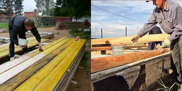 После создания опор нужно дать им пару-тройку дней на просушку и после этого пропитать гидроизолятором, это может быть битумная мастика. Она не только даст защиту от влаги бетонному материалу, но и спасет от сырости опорные балки здания.