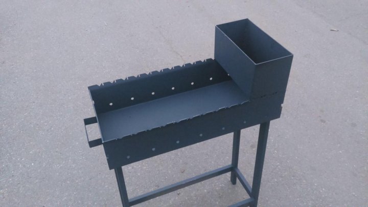 Если делать высоту меньше, то мясо будет подгорать, а более высокие стенки потребуют большое количество углей. Кроме того, по длинным стенкам делаются сантиметровые полукруглые, треугольные или щелевые прорези для лучшей фиксации шампуров в определённом положении.