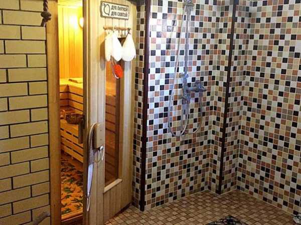 Отделка бани плиткой – очень стильноКроме деревянных материалов в отделке можно использовать плитку. Она идеально подойдет для моечного отделения и бассейна, если он есть. Современные производители предлагают огромный выбор плитки для бани, но условно можно выделить две разновидности: глазурованная и неглазурованная. Для отделки бани лучше выбирать глазурованную плитку с шероховатой поверхностью. Во-первых, глазурованная плитка лучше выдерживает перепады температуры и влажности. Во-вторых, глазурованная поверхность защищает плитку от проникновения бактерий в пористые слои материала.