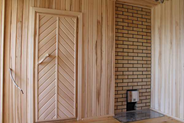 В зоне с высокими температурами в качестве отделки приемлемы только лиственные породы деревьев. При соприкасании тела с нагретой поверхностью недопустимы ожоги (в противном случае придется использовать подстилки), а именно лиственная древесина менее всего способна накаляться. Такие породы не выделяют смол, а это препятствует развитию грибковых элементов. Просыхать помещение с представленным видом отделки будет при обычном проветривании.