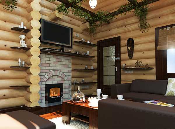 Будет очень уместным, если оформление бани дополнит камин в комнате отдыха. Он создаст дополнительный уют, и великолепно будет сочетаться с общим интерьером в русском стиле. Кроме того, в морозные дни камин будет подходящим дополнительным элементом обогрева помещения.