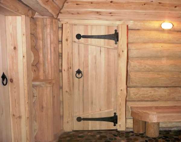 Двери для бани из-за «жесткого» температурно-влажностного режима лучше всего изготавливать из клееной древесиныДвери для бани из-за «жесткого» температурно-влажностного режима лучше всего изготавливать из клееной древесины, но также возможны двери с остеклением, украшенные витражами. Следует учитывать, что двери не должны открываться вовнутрь.
