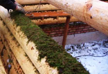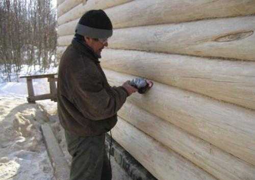 Баня из бревенПосле усадки сруба могут появиться щели между бревнами, особенно в случае использования таких материалов как пакля или мох: ветром выдуло, птички растащили и т.д. Использование джута минимизирует эту проблему. Но, если все же щели образовались, их тщательно заделывают и герметизируют. Для придания более опрятного вида, бревна шлифуют. Это очень кропотливый и трудоемкий процесс, требующий немалого терпения и мастерства.