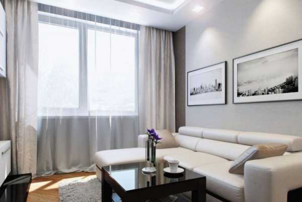 В гостиных с современным лаконичным дизайном больше подойдут однотонные, строгие и при этом достаточно легкие занавески.